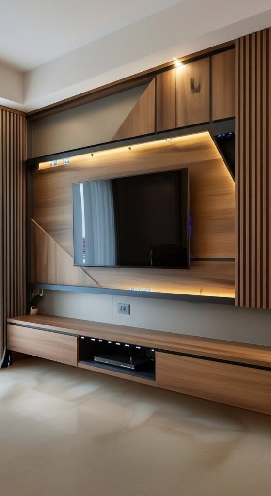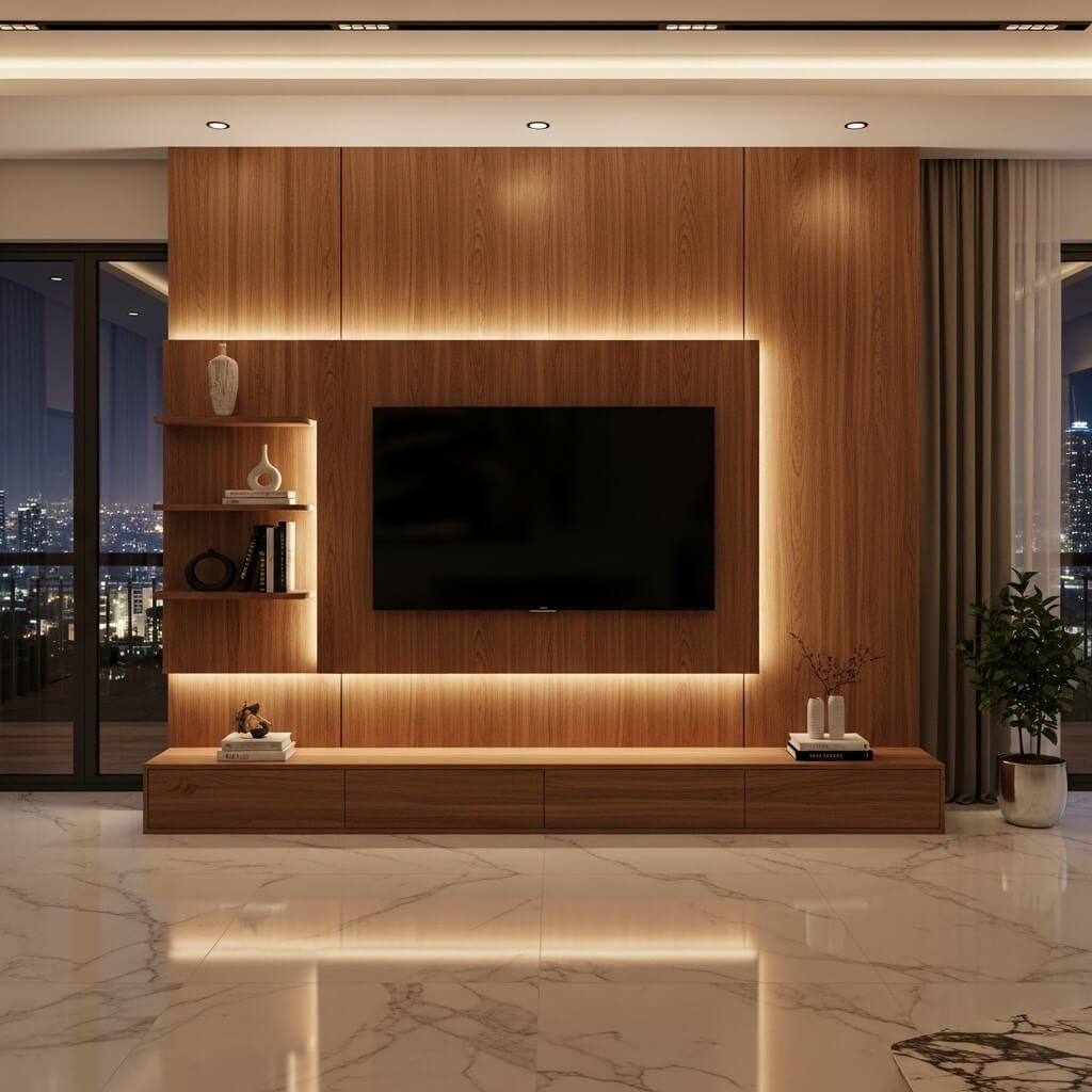 Bespoke wooden TV wall designs tailored to your space, layout, and interior theme.